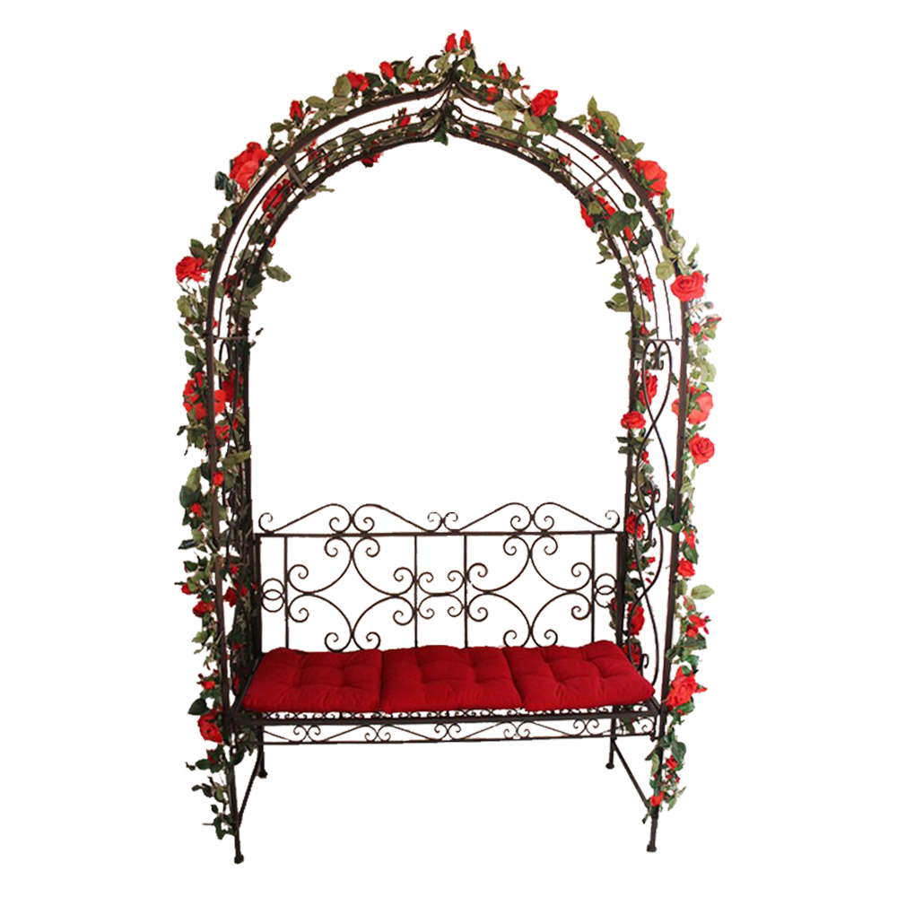 Sitzbank mit Rosenbogen und Seidenrosen. Perfekt für Ihre romantische Hochzeit, Trauung und Zeremonie. Bank wird ohne Kissen geliefert.