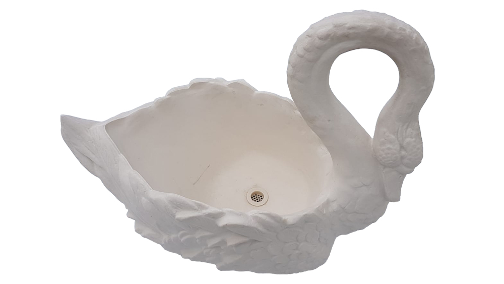 Schöner weisser Schwan aus Hartplastik, passend für Ihre romantische Hochzeit.