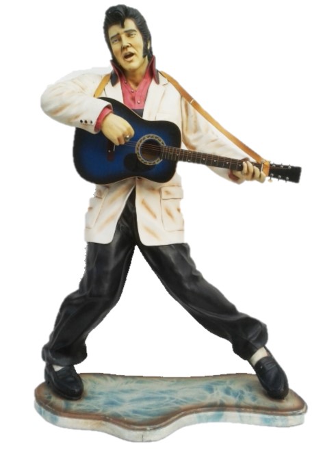 Elvis lebt! Menschengrosse Elvisstatue aus Polyester.