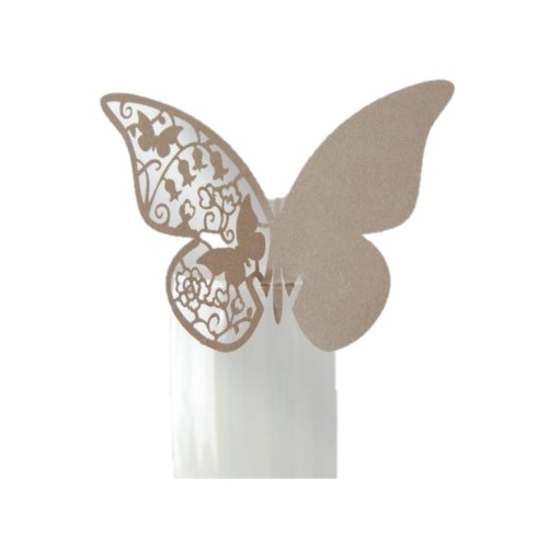 10 Tischkärtchen für den Glasrand Motiv "Schmetterling" in der Farbe silber-weiss zum selber beschriften. Ideal für Hochzeiten, Taufe, Partys etc.