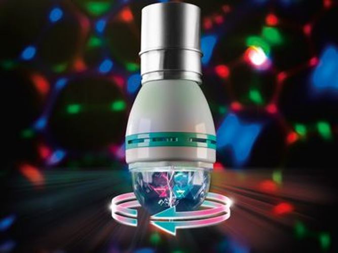 Rotierender Disco-Lichteffekt, muss nur noch in eine E27 Lampenfassung geschraubt werden.