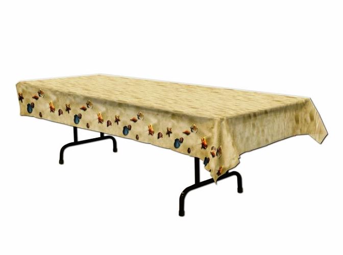Tischdecke aus Plastik im Sand,-und Muscheldesign. Masse: 1.37m x 2.74m
