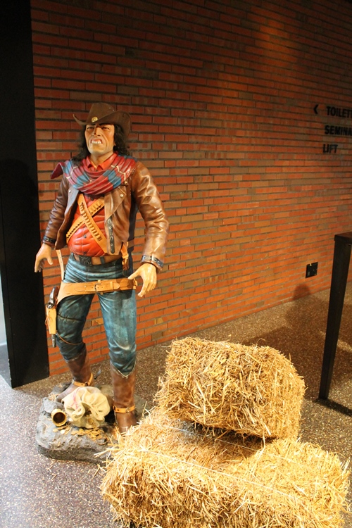 Cowboy in Echtgrösse selbststehend, aus Polyester. (Wetterfest) Sombrero Hut kann mit Cowboyhut ausgewechselt werden. > Cowboy Figur