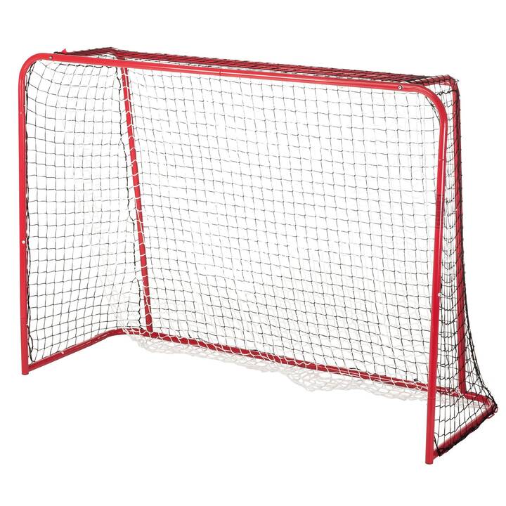 Zusammensteckbares Unihockeytor / kleines Fussballtor in rot mit weissem Netz inkl. 2x Schläger und 2x Bälle.