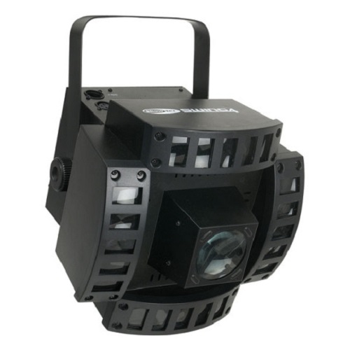 Beide Lichteffekte haben ihre eigenen LED-Lichtquellen. Zwei 3-in-1-RGB-LEDs mit 9 W für den Derby-Effekt und eine LED-Matrixplatine mit 108 RGB-LEDs für den Moonflower-Effekt. Alle Funktionen, die Sie brauchen, wie DMX, Soundsteuerung, Master/Slave-Funktion und Auto-Programme sind enthalten.