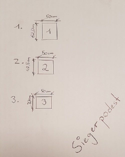 Siegerpodest - wer möchte nicht auch einmal auf Platz 1 stehen und einen Preis entgegennehmen?! Lassen Sie die Gewinner Ihres Wettbewerbes auch aufs Siegerpodest steigen. Das Podest besteht aus drei Würfeln. So kann es auch in einem PW Transportiert werden.
