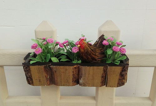 Blumenkiste aus Schwartenholz mit Haltebügel.