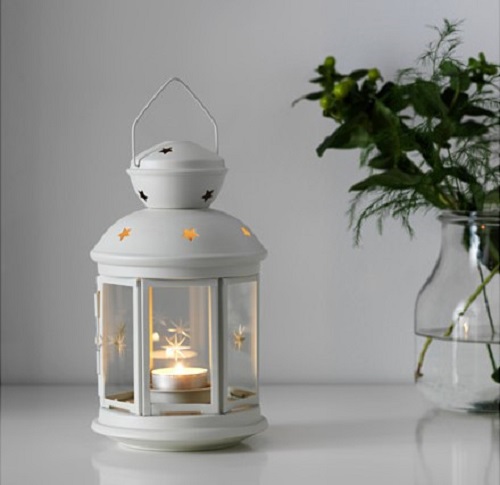Hübsche kleine Laterne in weiss aus Stahl mit Glasfenster und Einsatz für Teelichterkerzen.