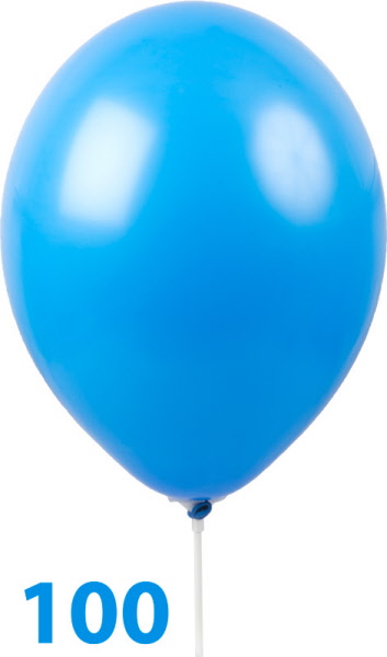 100 blaufarbene Ballons. Auch geeignet für Ballonflug mit Gasfüllung.
