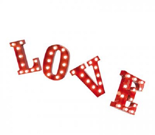 LOVE Schriftzug in rot mit 43 LEDs aus Metall mit Stromanschluss. Masse: 1,10mx33cmx5cm