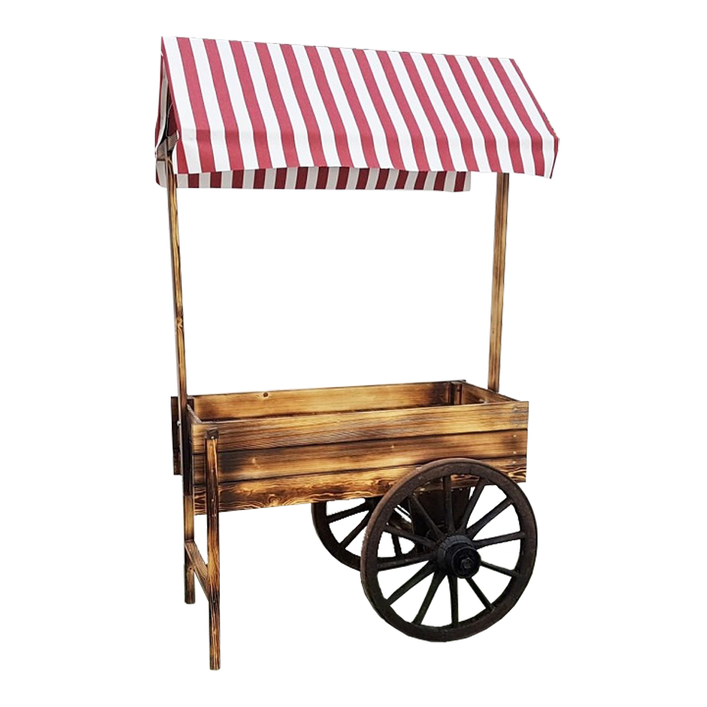 Wunderschöner nostalgischer Transport oder Buffetwagen mit rot-weiss gestreiftem Dach.