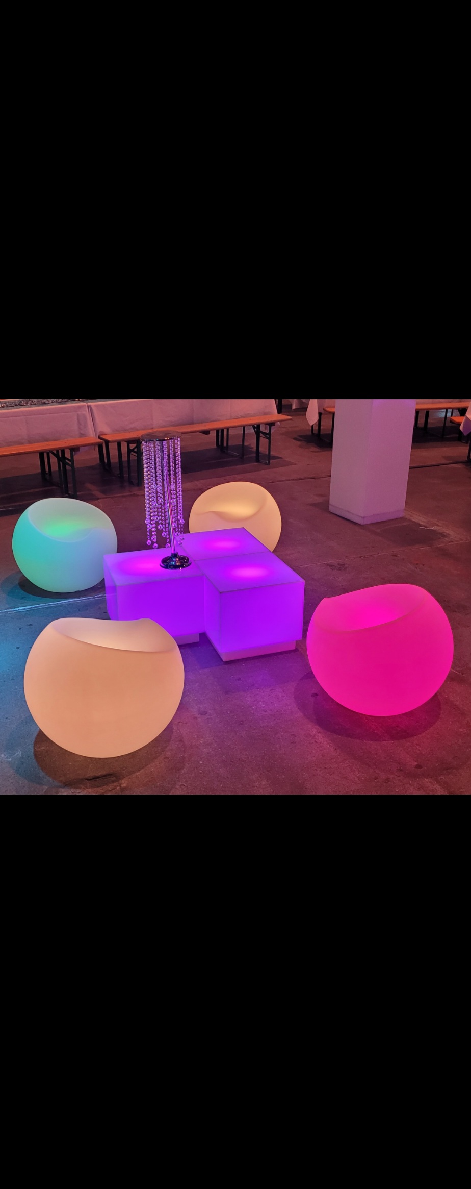 LED Sitzcube rund mit Akku Betrieb (8-12h) mit Wireless Fernbedienung. (Astera Steuerung)