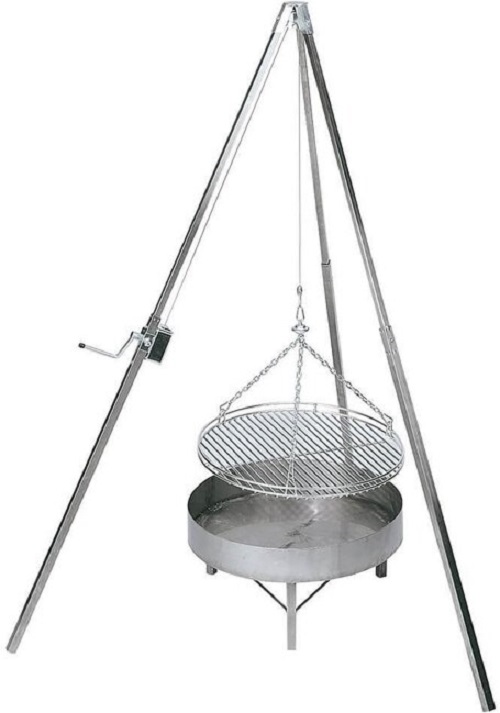 Grosser Dreibein Grill mit XL Rost Durchmesser 100cm für ca. 50 Personen. Kann über ein offenes Feuer oder Feuerschale gestellt werden.