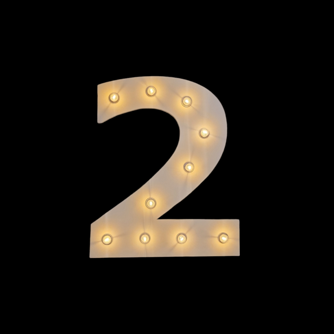 1m hoher Schriftzug "2"! Ein muss, an jeder Geburtstagsparty! Auch andere Zahlen möglich. 1,3,4,5,6,7,8,9,10,20,30,40,50,60,70,80,90,100,2022,2023,2024,2025 Die Zahlen werden inkl. einer warm-weissen LED Beleuchtung geliefert. Falls Sie lieber farbige Lämpchen möchten, dann nehmen Sie noch folgende Artikel Nummer dazu: 10 Stück 96719