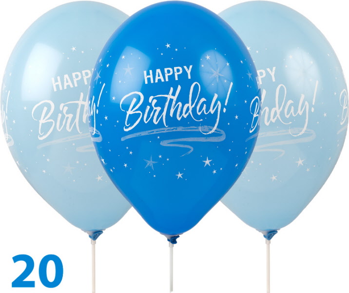 Ballons hellblau-blau Happy Birthday à 20 Stk
