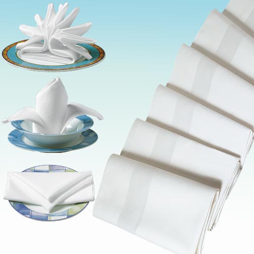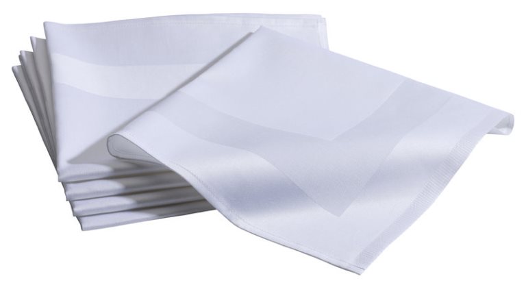 Strahlend weisse Damast-Serviette in langlebiger, feinfädiger Qualität.