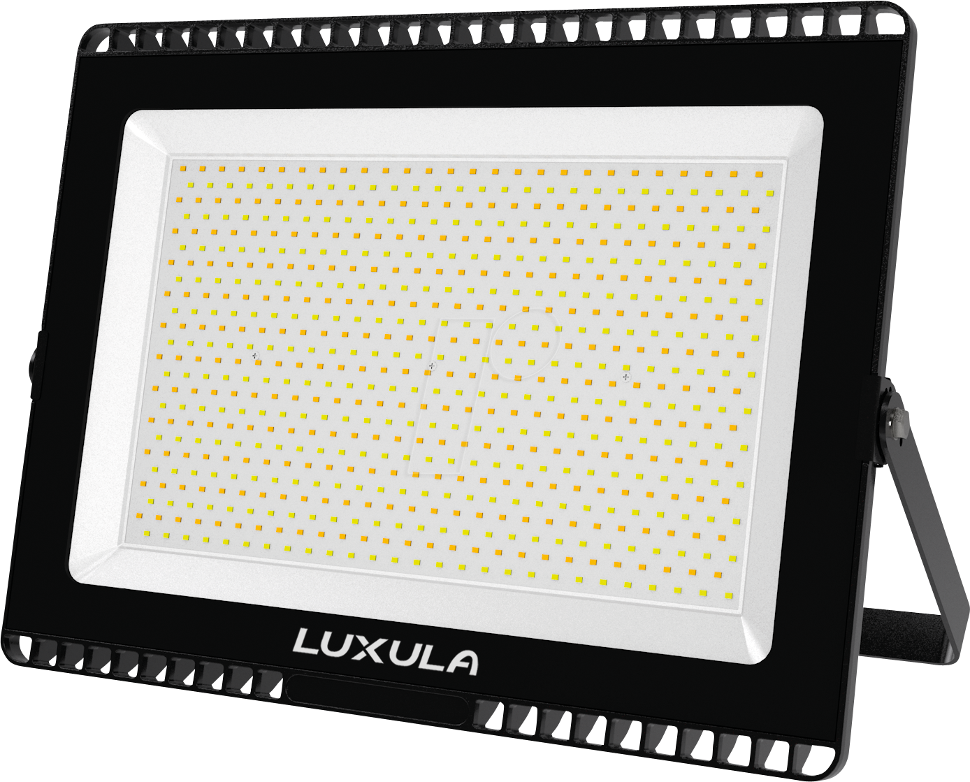 LED-Strahler mit CCT-Funktion, 300 W Leistung, Farbtemperatur wählbar zwischen 3000 K und 6500 K (warm-, neutral-, und kaltweiß), 30000 Lumen, IP65 staub- und wassergeschützt, ideal für Wege, Garten oder Hallen.