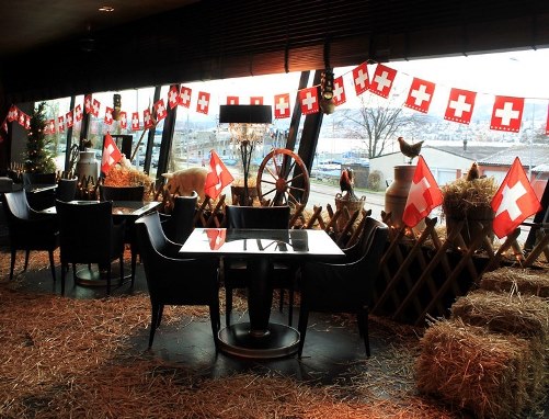 Galaanlass im Hallenstadion 2017, mit unseren Schwartenbretter Stehtischen
