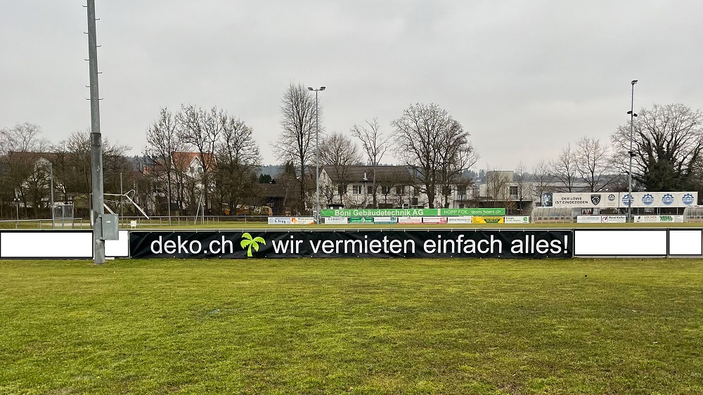 18 Meter Bandenwerbung beim FC Kölliken, direkt von der A1 sichtbar in Richtung Zürich-Bern