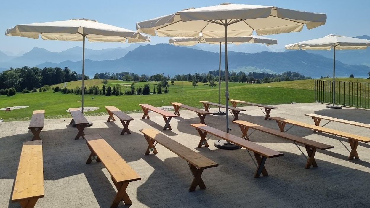 Hochzeit mit unseren 4m grossen Sonnenschirmen im Golf Club Weggis 2021