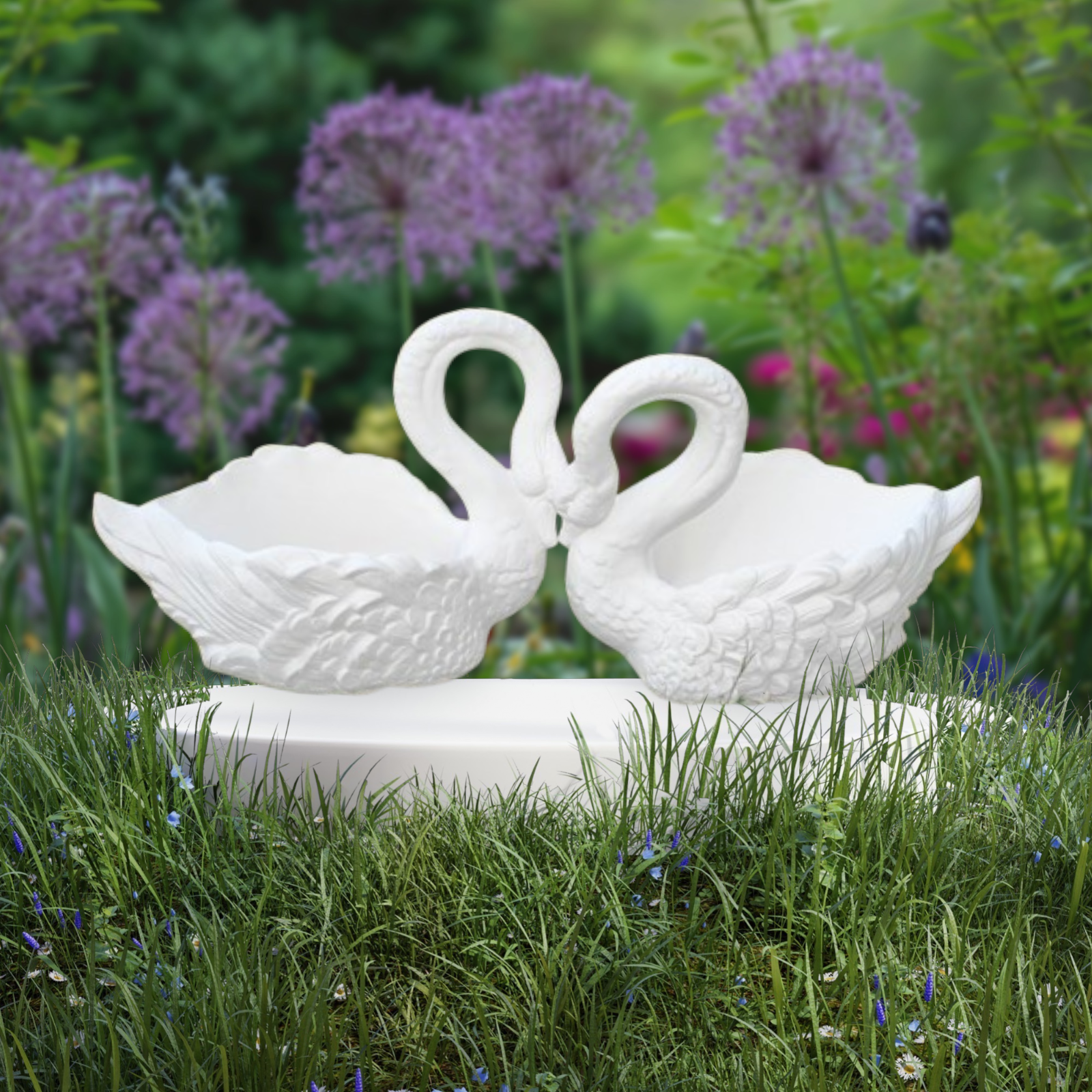 Schöner weisser Schwan aus Hartplastik, passend für Ihre romantische Hochzeit.