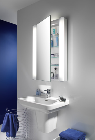 Spiegelschrank mit 1 Tür, stufenlos verstellbare Glasablagen im Innenschrank, Doppelsteckdose. Der Spiegel kann aufgehängt oder auch nur hingestellt werden.