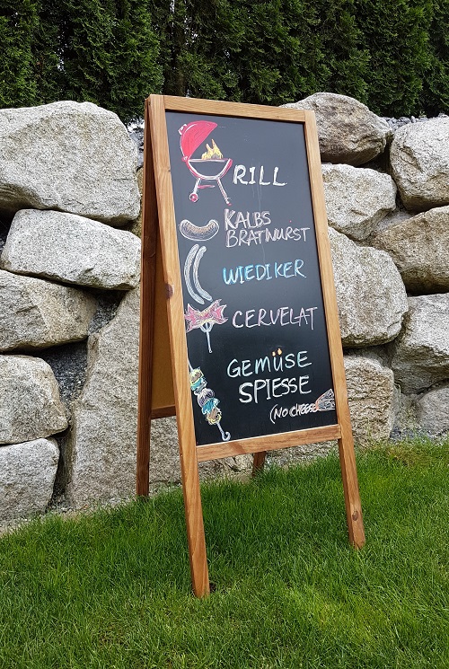 Kundenstopper rustikal 1.18m x 47cm mit doppelseitiger Kreidetafel. Dimension