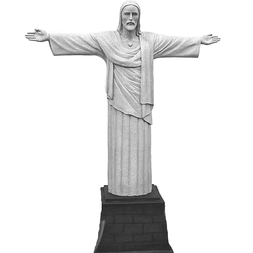 Schöne lebensgrosse Nachbildung der Christus Statue in Rio de Janeiro auf Sockel aus robustem und wetterfestem Glasfaserkunstharz.