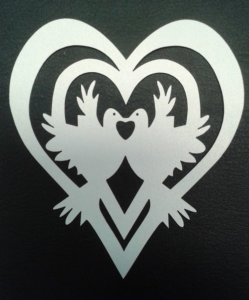 10 Tischkärtchen für den Glasrand Motiv "Hochzeitstauben" in der Farbe silber-weiss zum selber beschriften.