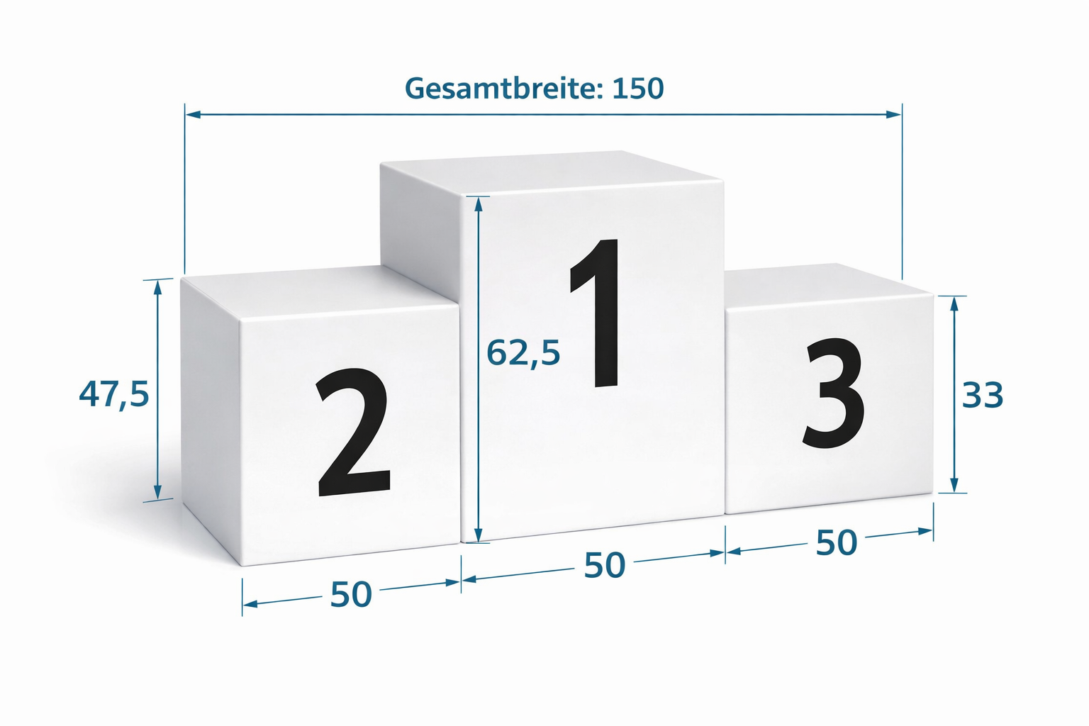 Siegerpodest - wer möchte nicht auch einmal auf Platz 1 stehen und einen Preis entgegennehmen?! Lassen Sie die Gewinner Ihres Wettbewerbes auch aufs Siegerpodest steigen. Das Podest besteht aus drei Würfeln. So kann es auch in einem PW Transportiert werden.