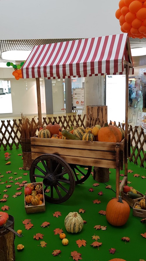 Wunderschöner nostalgischer Transport oder Buffetwagen mit rot-weiss gestreiftem Dach.