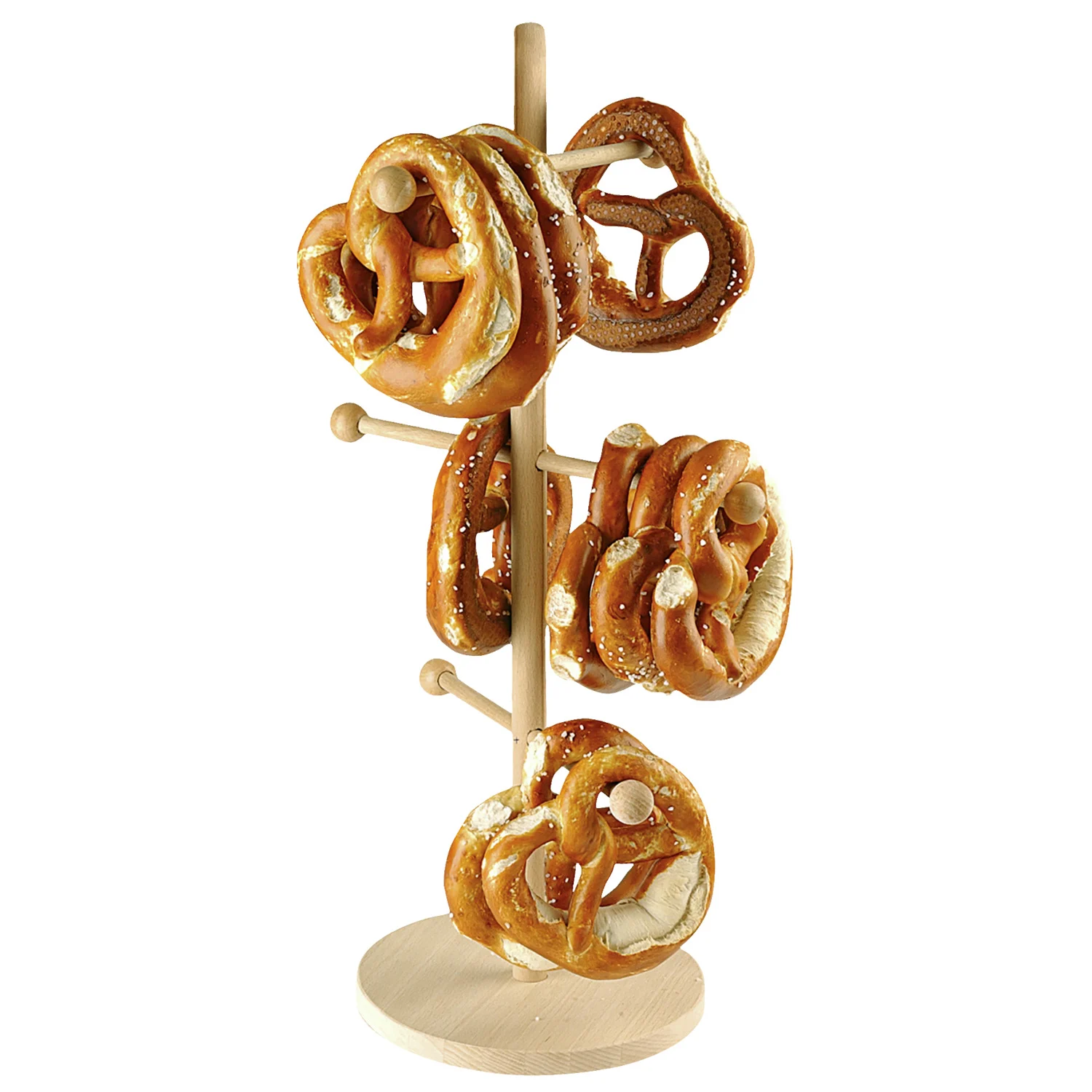 Brezelständer aus lackiertem Buchenholz. Für mindestens 16 Brezeln oder 16 Paar Würste. Einfache Selbstmontage. Handreinigung empfohlen.