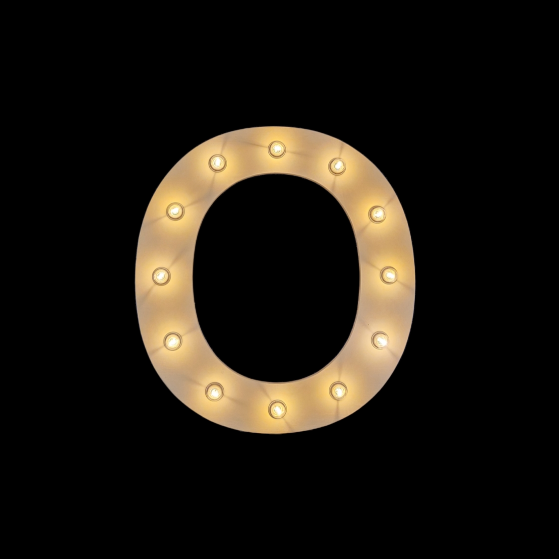 1m hoher Schriftzug "O"! Ein muss, an jeder Party. Die Buchstaben werden inkl. einer warm-weissen LED Beleuchtung geliefert. Falls Sie lieber farbige Lämpchen möchten, dann nehmen Sie noch folgende Artikel Nummer dazu: 12 Stück 96719