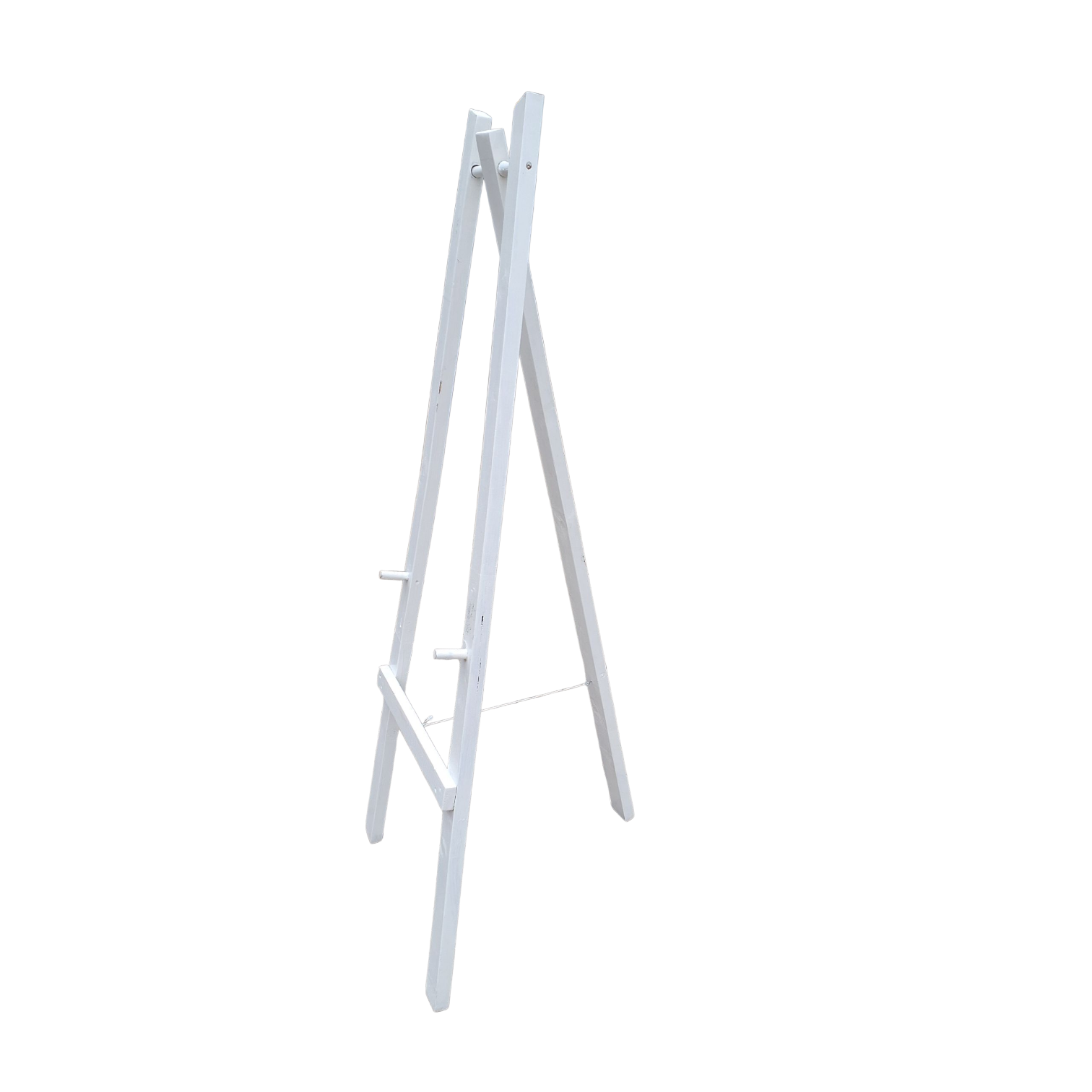 Weisse Staffelei aus Holz ohne Kreidetafel.